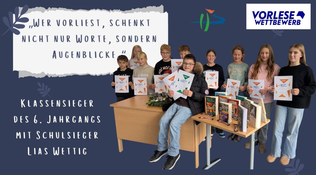 Am 03.12.2025 fand der Vorlesewettbewerb der sechsten Klassen statt und die Deutschlehrkräfte des sechsten Jahrgangs sind sehr stolz auf die KlassensiegerInnen. Alle haben sich sorgfältig vorbereitet und mit großem Engagement gelesen. Besonders beeindruckt hat, wie mutig die Schülerinnen und Schüler vor Publikum und Jury, bestehend aus Lehrkräften und Buchhändlern Christian Mecke sowie Annegret Mahring (Gebr. Seseke) aufgetreten sind. Dabei zeigten sie, dass sie fleißig geübt haben, und lasen die ausgewählten Textstellen betont und spannungsreich. Für viele war es eine wichtige…
